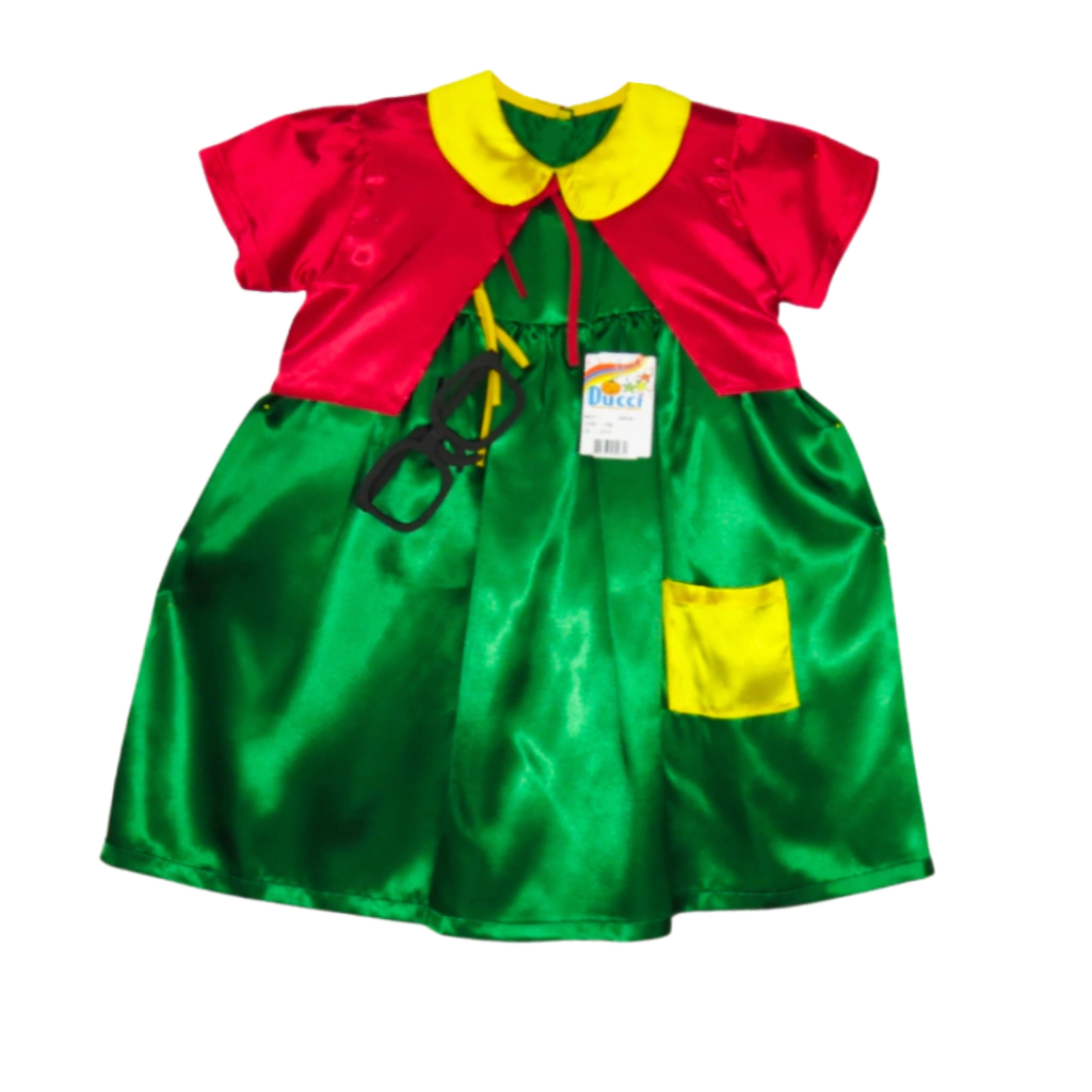 Nossas fantasias possuem um tamanho mais amplo para garantir conforto e estilo. Recomendamos escolher o mesmo tamanho da roupa que a criança está usando no momento.